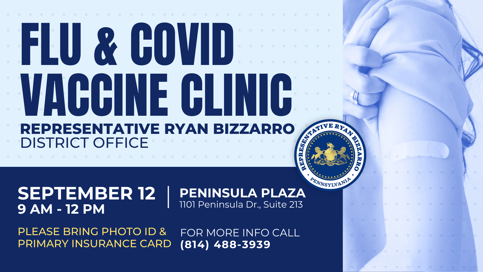 Don't forget, on Friday morning, LECOM will host a flu shot and COVID-19 vaccine clinic at my district office, located in Peninsula Plaza at 1101 Peninsula Dr., Suite 213 in Millcreek. This is a walk-in event, so no reservations are needed. Please bring your ID and insurance card. LECOM is able to answer shot and insurance questions at 814-488-3939.