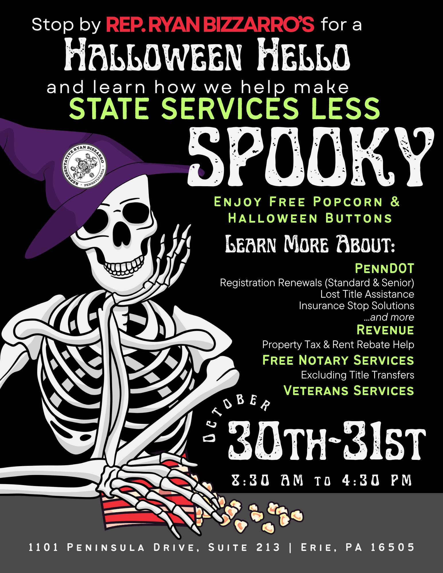 Curious about how my office can assist you? Want to learn more about your state government? Please visit the Millcreek Office in Peninsula Plaza tomorrow, on Halloween. It's day two of a special event where my team and I will be there to share the many services we offer and answer your questions. Stop by and say hello, enjoy some popcorn — we’d love to see you!