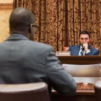Rep. Ryan Bizzarro attends a voter education and outreach lunch-and-learn briefing, hosted by Rep. Aerion Abney, in the Gold Room at the Allegheny County Courthouse in Pittsburgh.