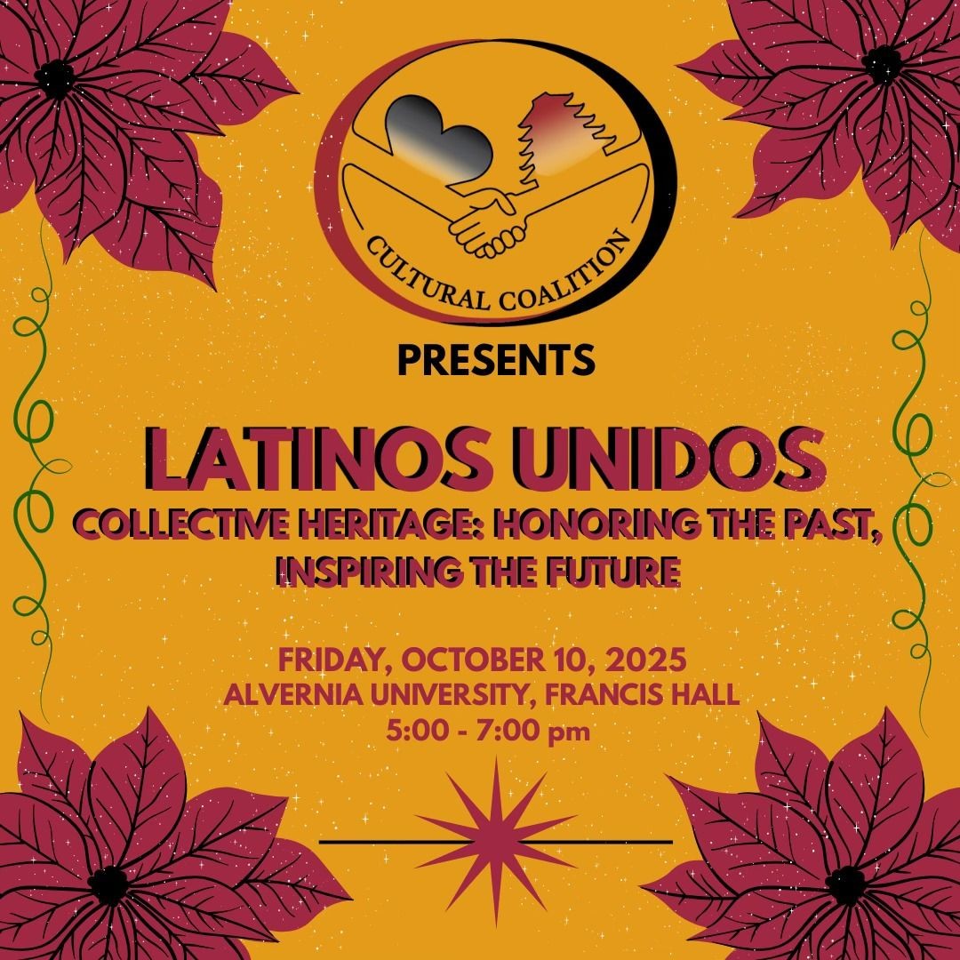 Cultural Coalition presents Latinos Unidos (collective heritage) honoring the past and inspiring the future. This event will be held on Friday, October 10 from 5 PM - 7 PM at Alvernia University in Francis Hall.