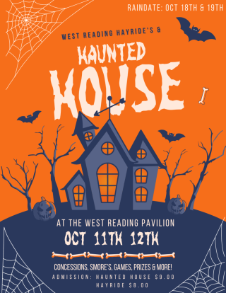 There will be a Haunted House and Hayrides at the West Reading Pavilion on Saturday, October 11th and Sunday, October 12th. There will be concessions, smores, games, prizes, and fun for the entire family! Come out this weekend for a night of Fall fun in the Pavilion!
