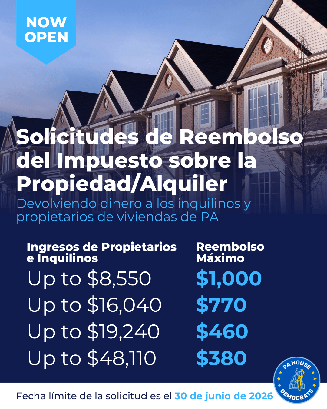 Applications for Property Tax/Rent Rebates are now open! This gives money back to PA renters and homeowners for costs from 2025 - including seniors, widows and widowers, and those with disabilities.