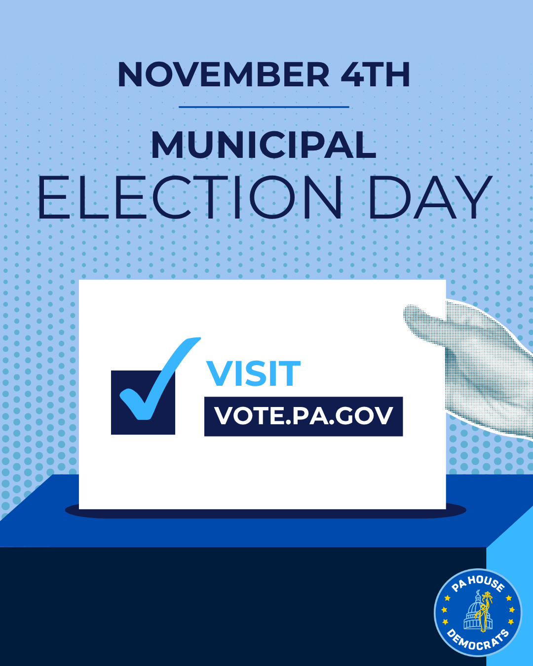 This coming Tuesday, November 4, is Election Day and our office will be CLOSED. Your vote is your voice! Make a plan to vote at your local polling place between 7 a.m. and 8 p.m.