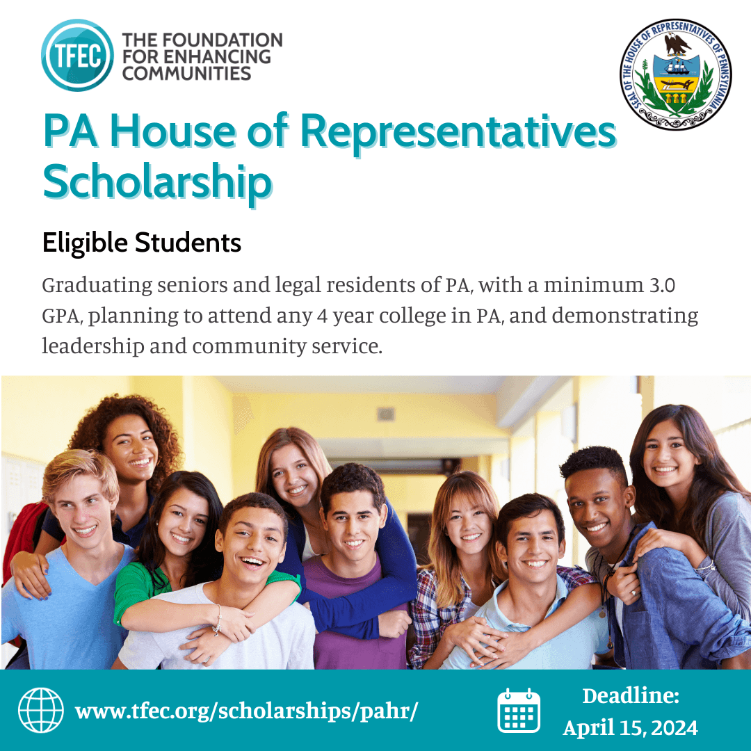 Applications are now open for the PA House of Representatives Scholarship Program, administered by The Foundation for Enhancing Communities.