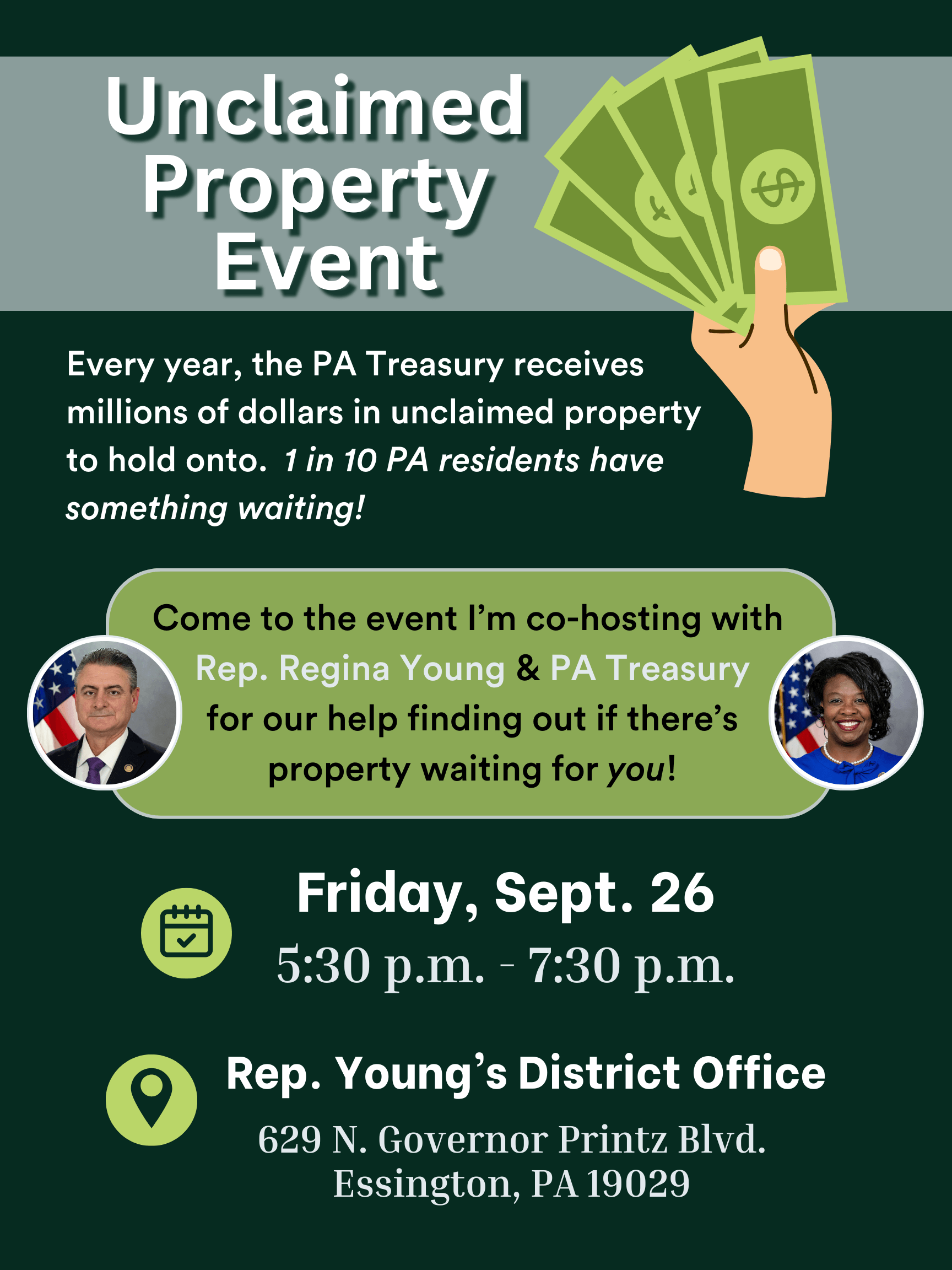 We have 2024 Property Tax/Rent Rebate booklets. Just ask my staff at either of our district offices in Ridley Park or Darby Township. As a reminder, my staff is happy to assist you with the rebate application process. Applications for a rebate on what you paid in 2024 are due by Dec. 31.