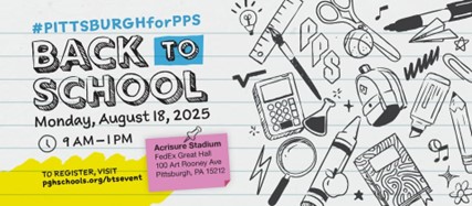 PPS Annual Back to School Event Monday, August 18, 9:00 AM – 1:00 PM | Gold Lot 1A, 792 W. General Robinson Street   Pittsburgh Public Schools Families are invited to participate in a drive through back-to-school giveaway, including backpacks, school supplies, sanitizing wipes, as well as food and drinks. Registration for the in-person event at Acrisure has reached capacity – but the drive through portion is free and open to all PPS students while supplies last.   Learn more here. |
