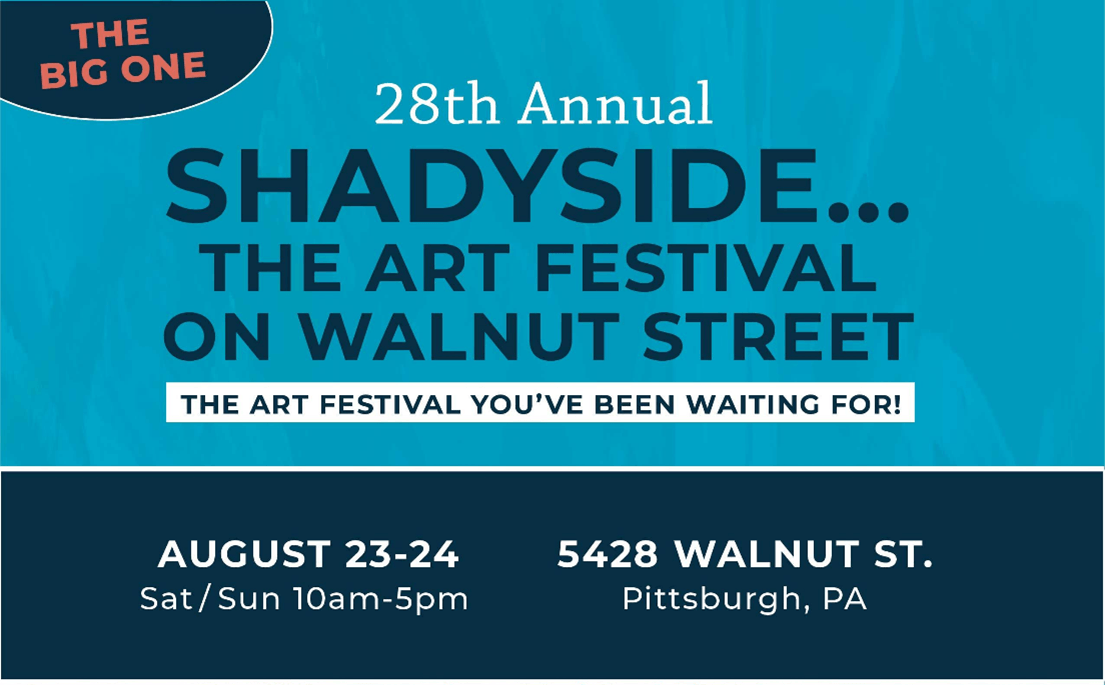 28th Annual Shadyside... The Art Festival Saturday, August 23 & Sunday August 24, 10:00 AM – 5:00 PM | Walnut Street   All are invited to view a diverse collection of artwork from both nationally recognized and local artists at this outdoor art festival.   Free.   Learn more here. |