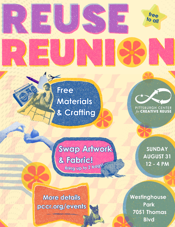 The Pittsburgh Center for Creative Reuse invites neighbors to gather at Westinghouse Park for an afternoon of community, creativity, and connection. This free outdoor event will feature a hands-on crafting activity for all ages, a treasure hunt through tables of free creative materials, and an art swap for new-to-you artwork. Guests are also welcome to participate in a fabric and fiber arts swap by bringing up to two bags of clean, gently used materials to exchange.