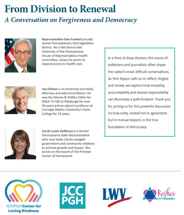 I was honored to participate in the Center for Loving Kindness’ annual Yom Kippur program, From Division to Renewal: A Conversation on Forgiveness and Democracy.