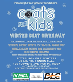 Pittsburgh Fire Fighters will be distributing free coats to any kids in need this winter. Children must be present to receive a coat.