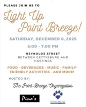 Join the Point Breeze Organization for a winter celebration featuring food trucks, local businesses, and family-friendly fun. The event is free and open to all.