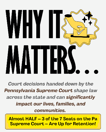 This November, Pennsylvania voters will make decisions that directly shape the future of our courts, and not just by electing new judges, but by voting to retain them as well. You’ll also be asked to vote in judicial retention races, which determine whether sitting judges stay on the bench for another term. On your ballot you will see judicial retention questions for one judge on the Superior Court, one judge on the Commonwealth Court, and three justices on the Supreme Court.