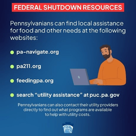Due to the federal government shutdown, Pennsylvania residents will not receive their SNAP benefits until the shutdown ends and funds are released to PA.