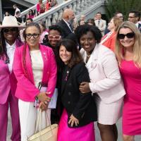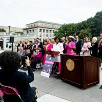 Speaker of the PA House Joanna McClinton stands with House and Senate colleagues to kick off Breast Cancer Awareness Month in PA. Breast cancer is the most common cancer diagnosis for women with roughly 14,000 new cases each year in PA.