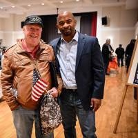 Veterans and members of the Armed Forces gather at Soldier's Grove at the State Capitol in Harrisburg to recognize the 50th Anniversary of the Prisoners of War and Missing in Action Remembering.