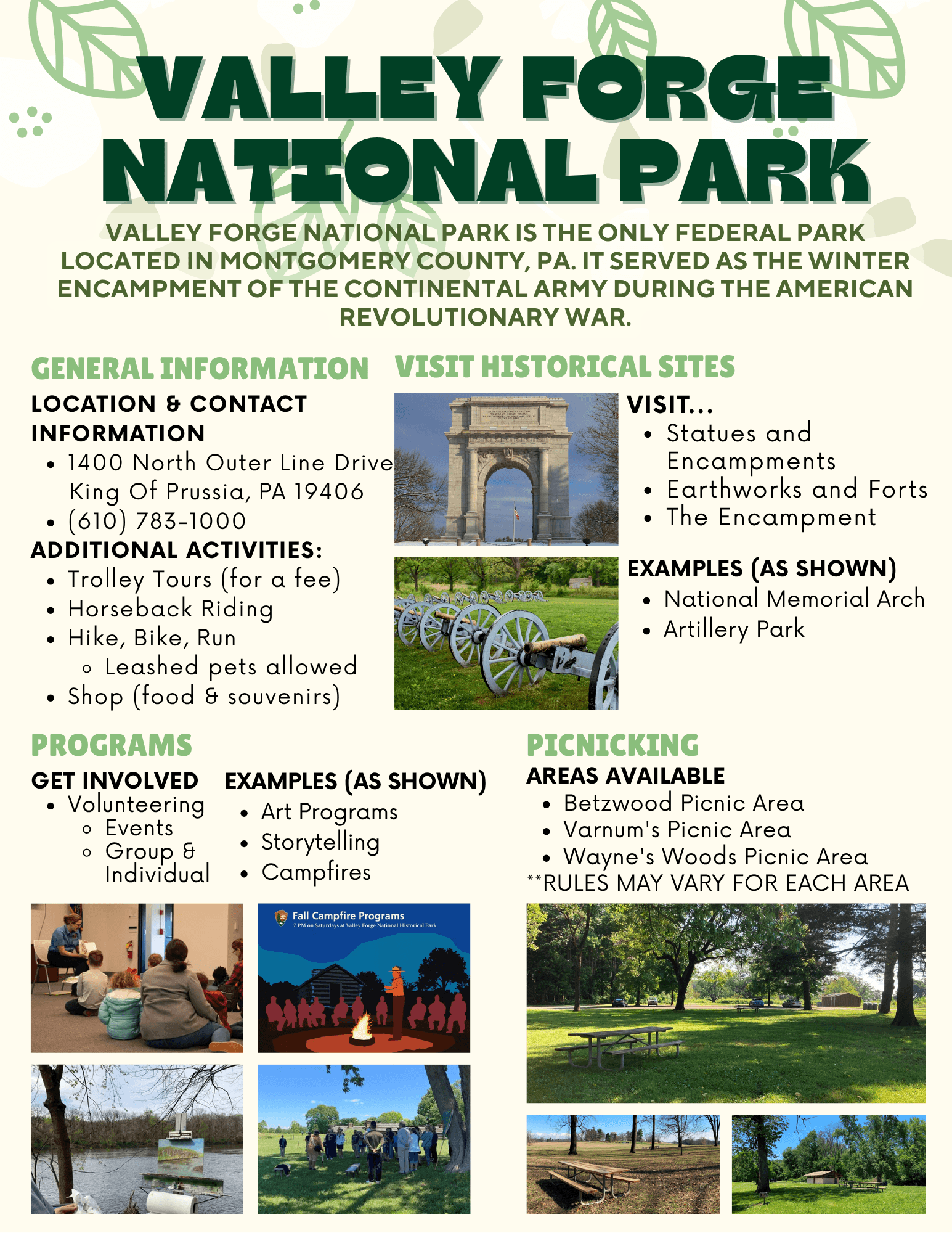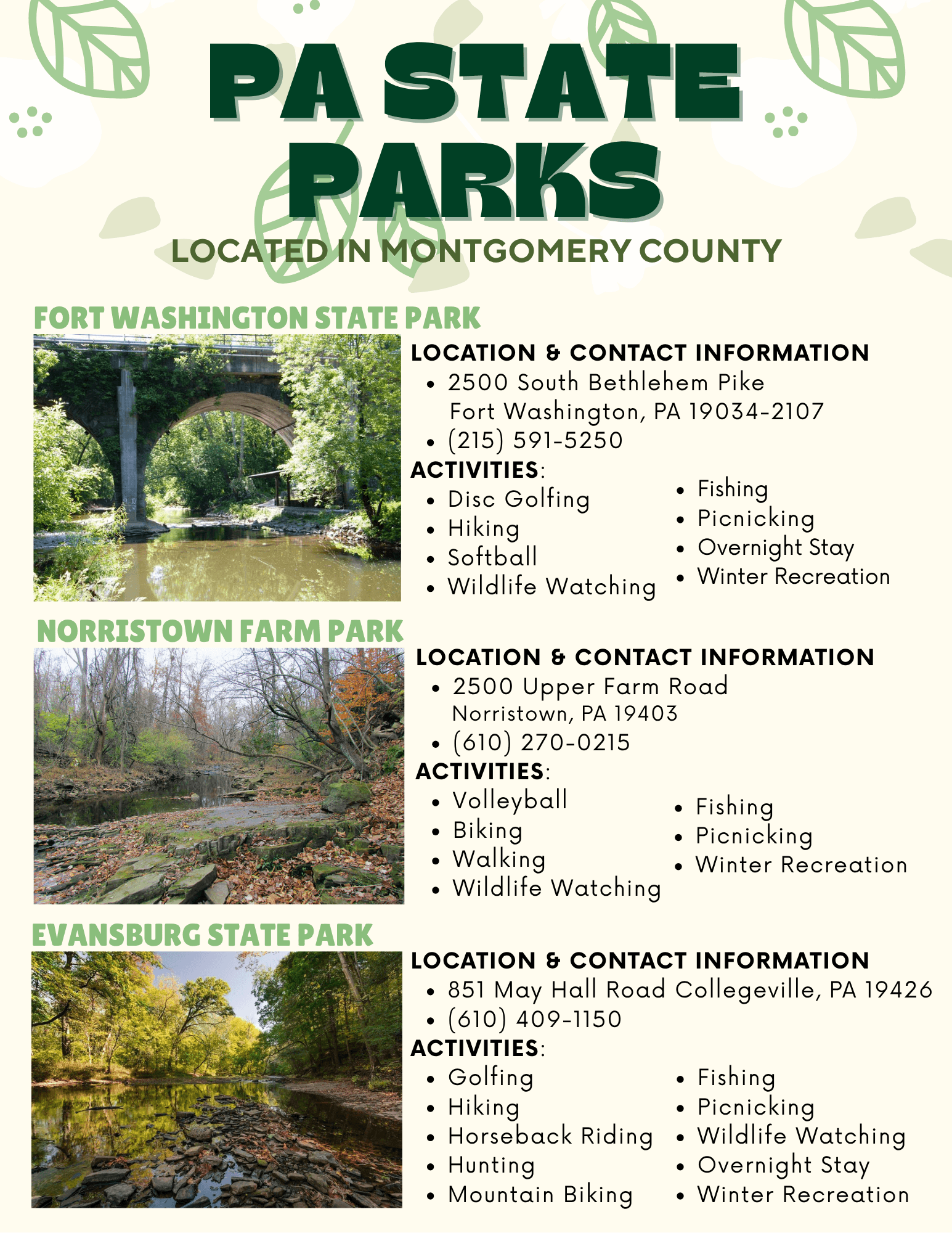 Yuki interned with us over Summer 2025. She is a rising Junior at Lower Moreland High School and was very excited to get some real government experience as a high schooler. Yuki made several different flyers for us while she was here. We want to highlight the work she did on creating a state park and Valley Forge Park info page.