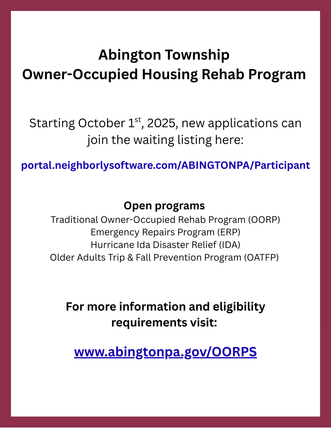 Owner-Occupied Housing Rehabilitation Program | Abington Township, PA