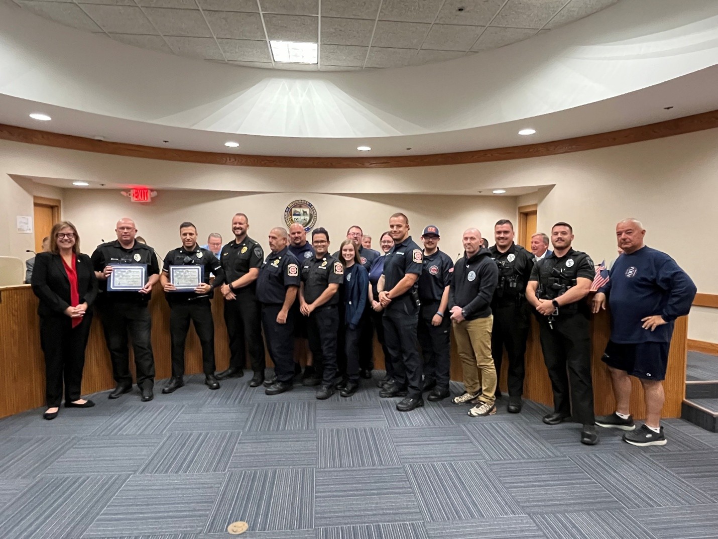 During Monday night’s Brookhaven Borough Council meeting, I was honored to present certificates to Acting Sgt. Greg Martin and Officer Adam Viola of the Brookhaven Borough Police Department for their bravery in rescuing a resident from a fire at Hilltop Condos.