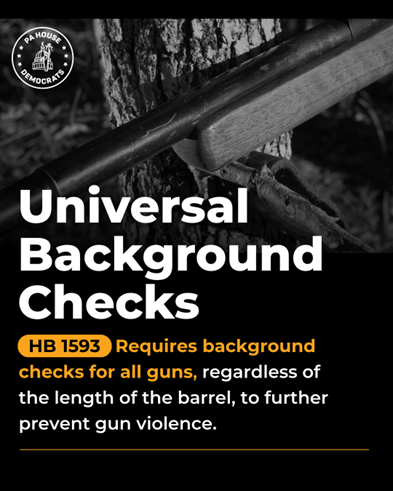 I voted yes on four-commonsense gun safety bills supported by law enforcement in the wake of the tragic murder of three police detectives in York County last month. Unfortunately, only one of those bills we ran last week passed the House: HB 1593 – requiring background checks for all gun purchases. The legislation now moves to the Senate. The other three gun safety bills failed on the House floor by one vote.