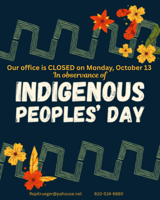 My district office will be closed this coming Monday, October 13 in observance of Indigenous Peoples Day. We will reopen Tuesday, October 14 at 9:00 a.m.