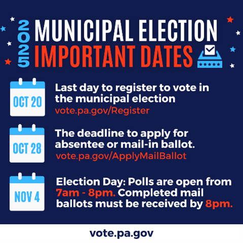 To register to vote or request a mail-in or absentee ballot, visit vote.pa.gov.