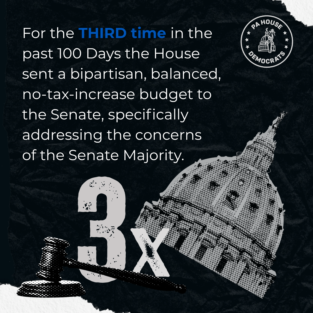 Last Wednesday, for the third time in the previous 100 days, House Democrats sent a bipartisan, balanced, no-tax increase budget to the Senate; one that directly addresses the concerns raised by the Senate Republican majority.