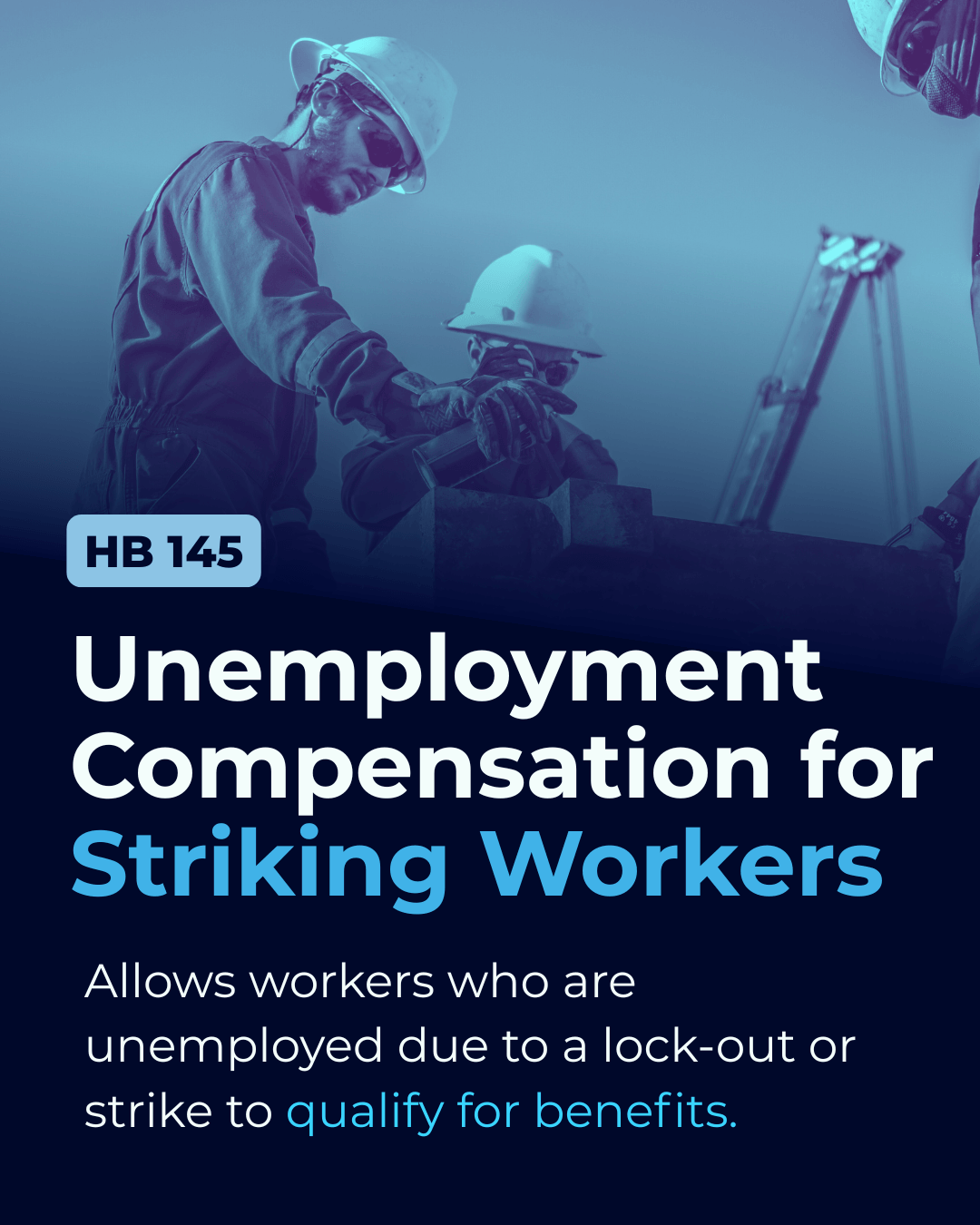 HB 145: Protects workers by allowing them to collect unemployment compensation benefits if they lose work due to a labor dispute.