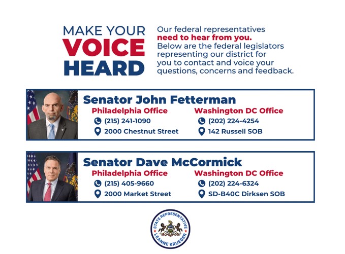 Please register by calling 610-534-6880 or email RepKrueger@pahouse.net