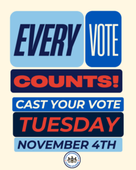 Tuesday, November 4 – Election Day: Polls open at 7 a.m. and close at 8 p.m. Voters must be in line by 8 p.m. to cast their ballot.