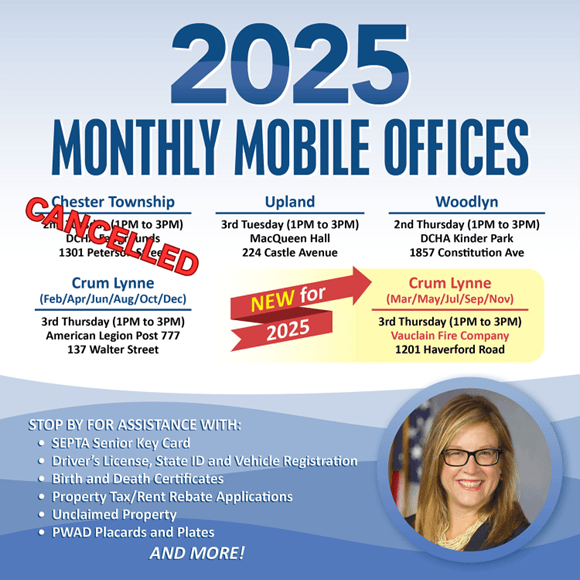 *Due to Veteran’s Day on Tuesday, November 11, we will not be holding Mobile Office Hours in Chester Township, DCHA Fairgrounds.