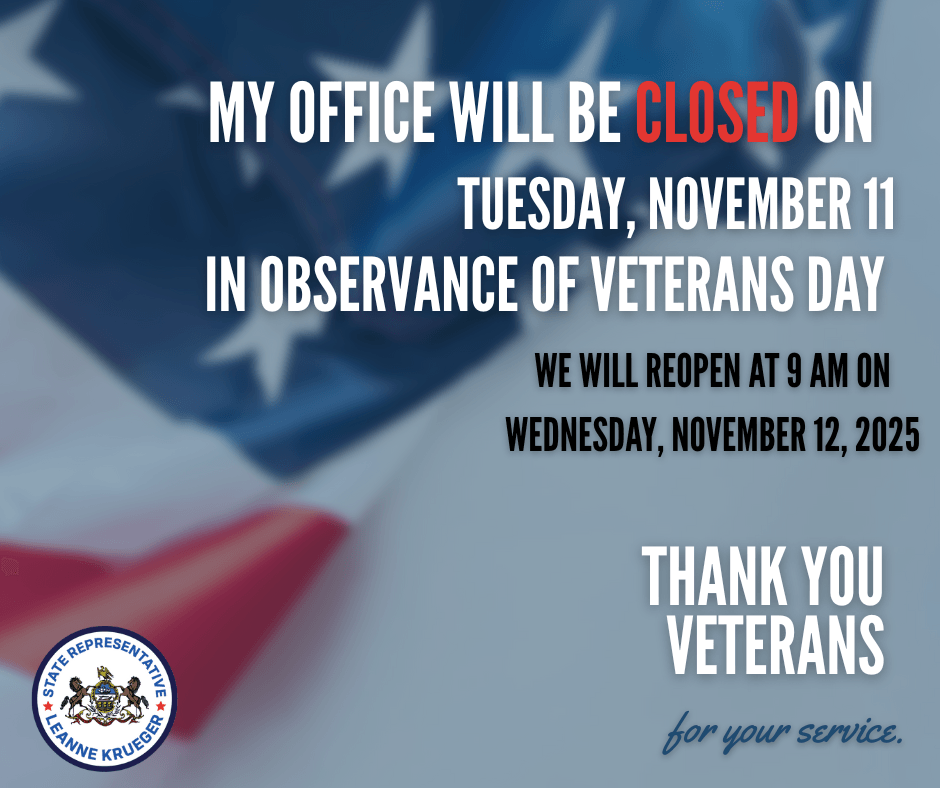 I am hopeful that this means the budget deal we’ve been negotiating for weeks is finally complete and ready for a vote in both the State House and Senate. With divided government in Pennsylvania, I know that any budget agreement will require compromise from both sides to get it across the finish line. The people of Pennsylvania have been waiting long enough – I am ready to vote for a compromise budget when we return to the Capitol. I will continue to keep you updated on the state budget in this e-newsletter.