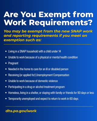 There are some exemptions to these new work requirements. Check the graphic below to see if you qualify for one.