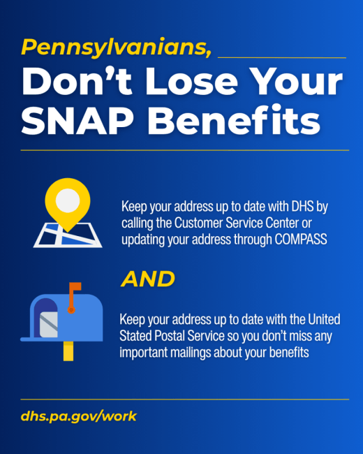 Remember to keep your address up to date with DHS and the United States Postal Service so you won’t miss any important information about your benefits.
