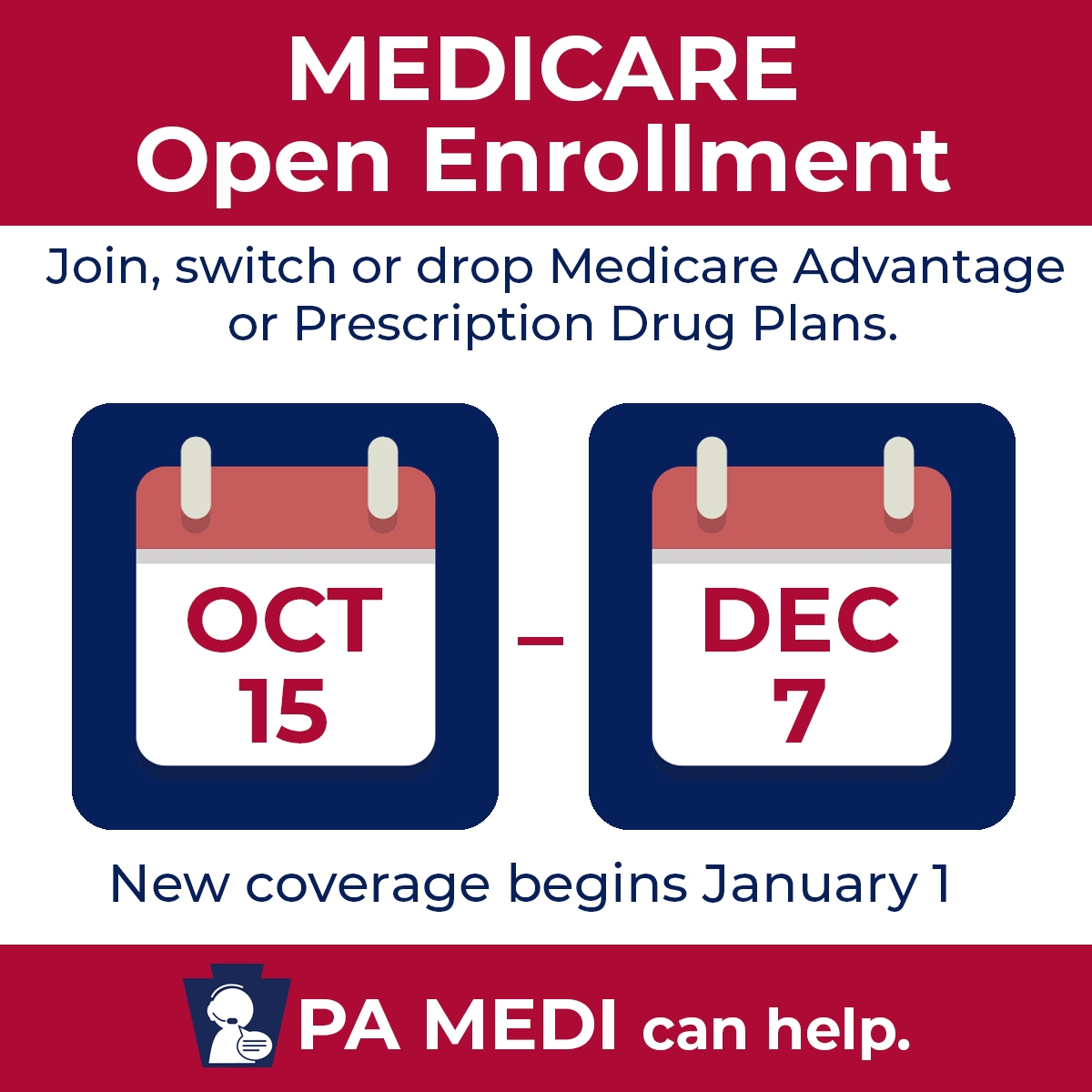 Whether you’re new to Medicare, need help during open enrollment, or have questions, a trained PA MEDI counselor can guide you through it.