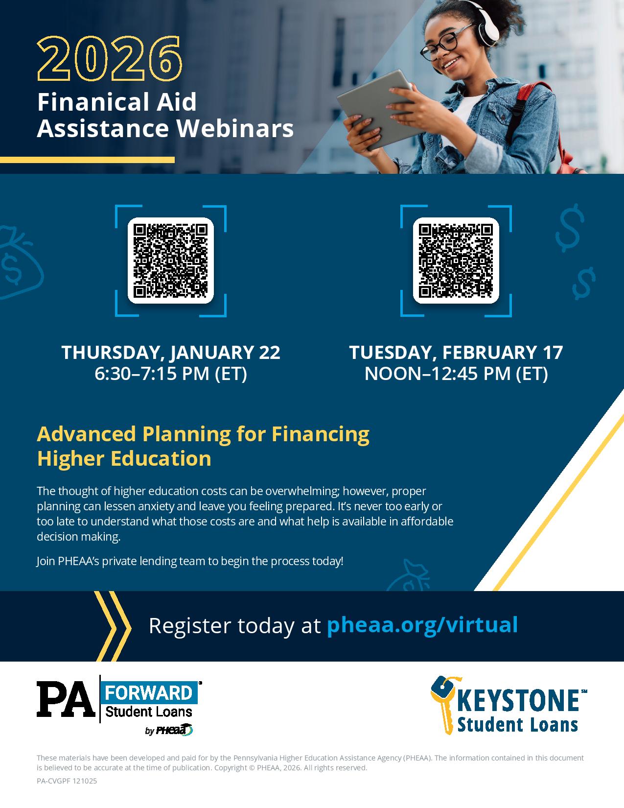 PHEAA 2026 Financial Aid Assistance Webinars