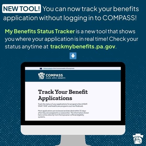 You can track your COMPASS application HERE: https://trackmybenefits.pa.gov/.