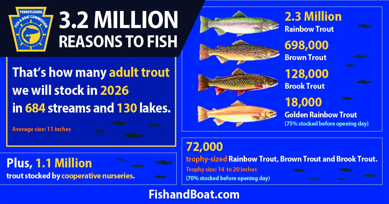 The Pennsylvania Fish and Boat Commission has posted its 2026 trout stocking schedule giving anglers a chance to see when their local waterways will be stocked.