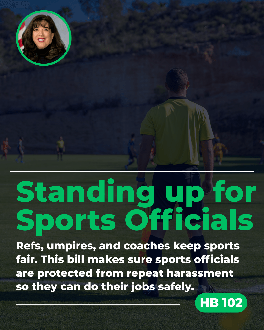 The House also passed House Bill 102 with bipartisan support. I introduced this bill to address the growing problem of verbal and physical harassment being faced by our sports officials.