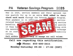 If you or a veteran you know are unsure about a notice or offer like this, please contact the DMVA at 800-547-2838 to discuss it with an accredited veteran service officer at no cost.