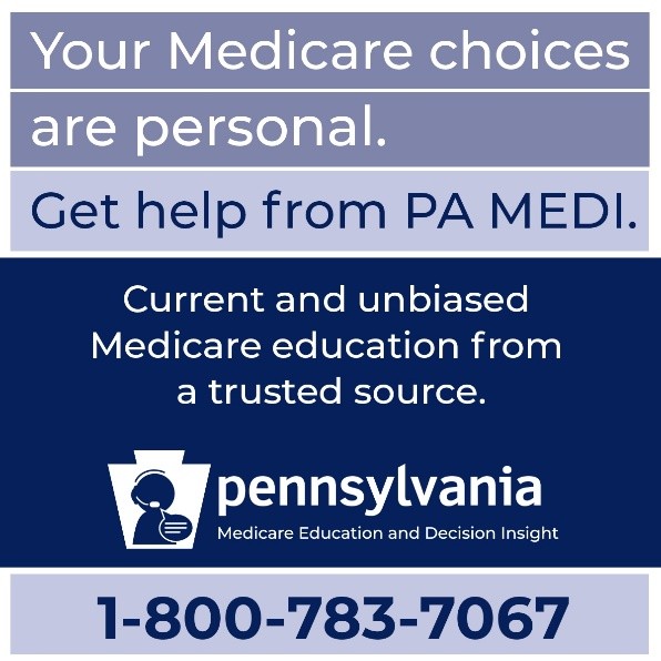 If you’re not sure which plan is best for you, please be aware that the state provides free, confidential insurance counseling through PA-MEDI. Visit this page or call 1-800-783-7067 to learn more. You can also call our Allegheny County Area on Aging at 412-350-5460.