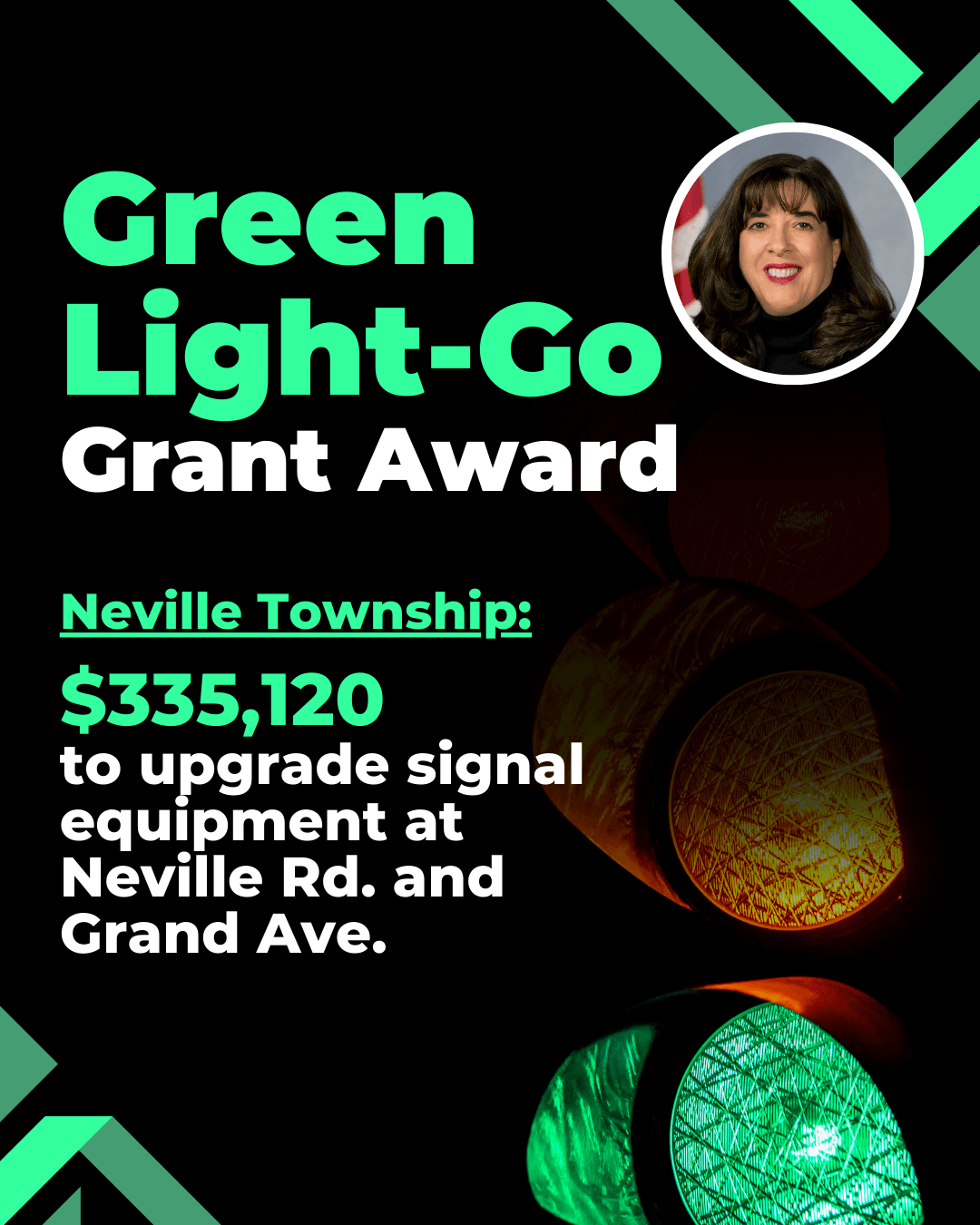 I’m proud to announce more than $335,000 in funding from the Green Light-Go Program to upgrade traffic signal equipment at the intersection of Neville Rd. and Grand Ave. in Neville Township. This investment will improve safety and traffic flow for everyone who travels through this intersection.