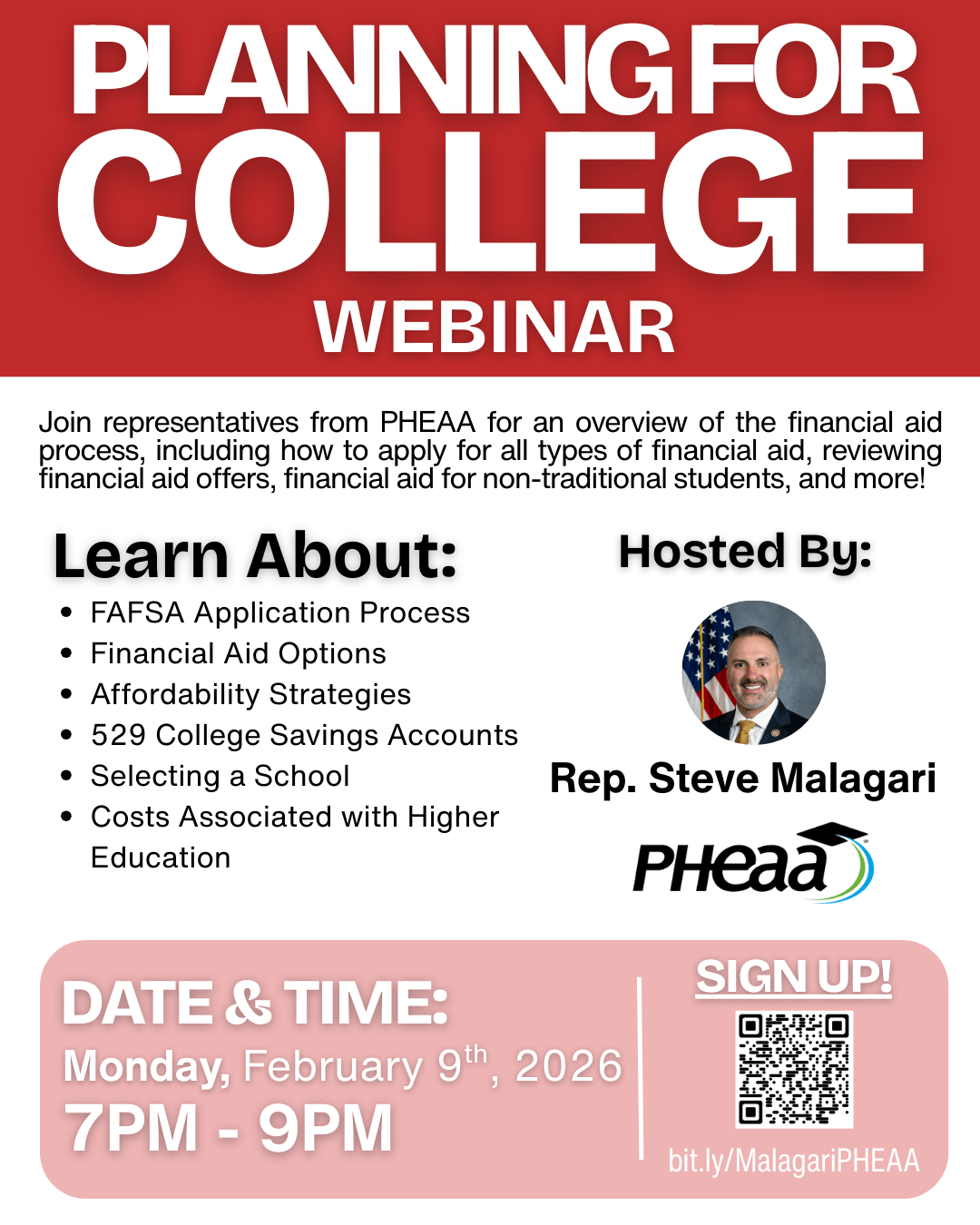 RSVP at bit.ly/MalagariPHEAA to secure your spot and speak to the experts on financing a college education-meeting link will be provided prior to event start.