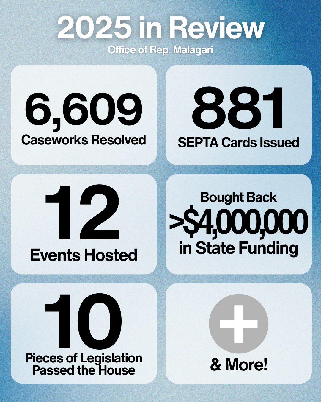 Happy New Year! I hope this new year is full of opportunities for all of you. Below, you'll find a recap of what my team and I were able to accomplish in 2025, and some exciting new developments to look forward to in the new year-from new municipal leaders to new infrastructure funding. Thank you to everyone who helped make 2025 such an impactful year-and here's to an even better 2026!