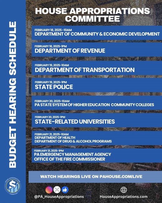 Visit houseappropriations.com to recap the hearings, see the upcoming hearing schedule, and learn more about the state budget.