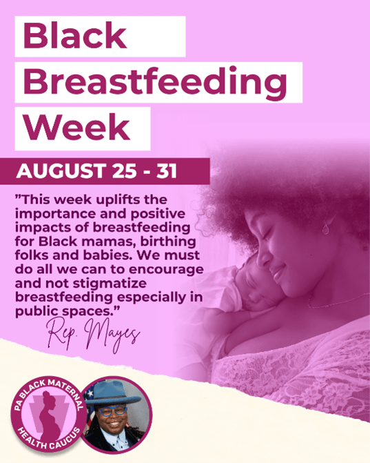 I am working every day to make sure that Black moms and birthing people have the support and resources that they need and that all moms are not stigmatized when they breastfeed in public spaces. That is why I introduced House Bill 707 to require all state buildings to have a nursing parents room and House Bill 526 to add coverage for pumping in the PA Freedom to Breastfeed Act with Rep. Jenn O’Mara – both bills are part of the Pennsylvania MOMNIBUS 2.0. Learn more at pahouse.com/BMH/Legislation.