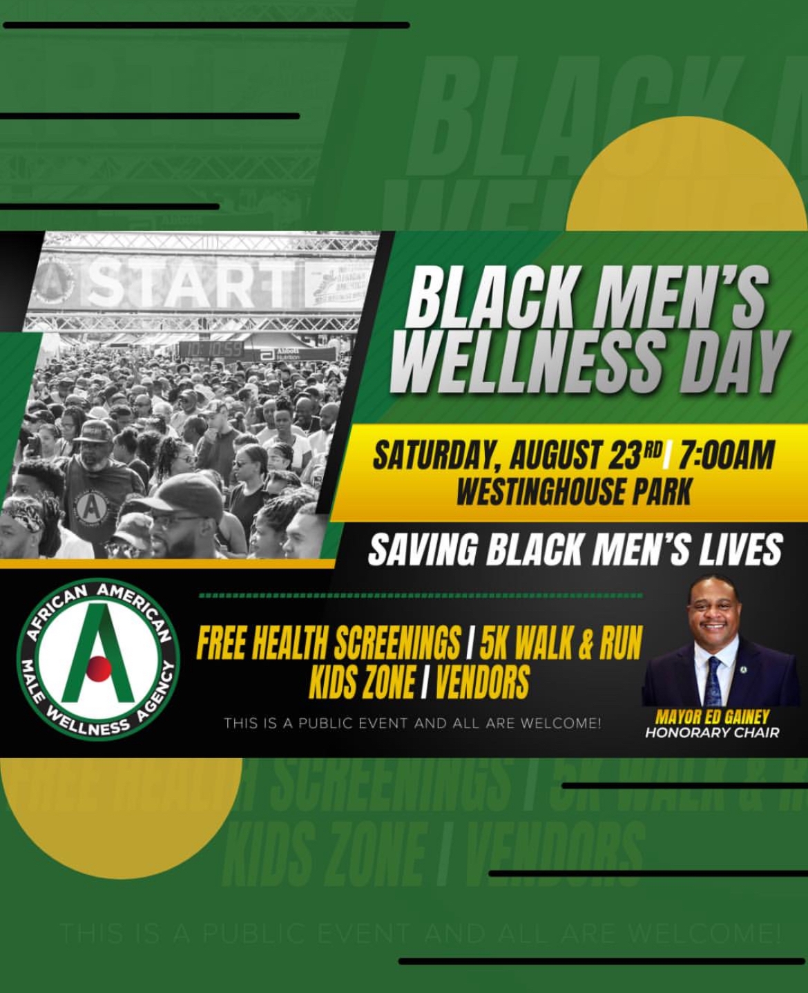 African American Male Wellness Agency is hosting Black Men’s Wellness Day on Saturday with Honorary Chair, Mayor Ed Gainey, August 23rd at Westinghouse Park! Far too many Black men are being lost to preventable health issues. That ends now. Let’s show up for a powerful, family-friendly day focused on wellness, movement and community. There will be a 5K, free health screenings, good food, music and more! For more information and to register, go to https://aawellness.org/?effe=18401&effe-id=1112924189209.