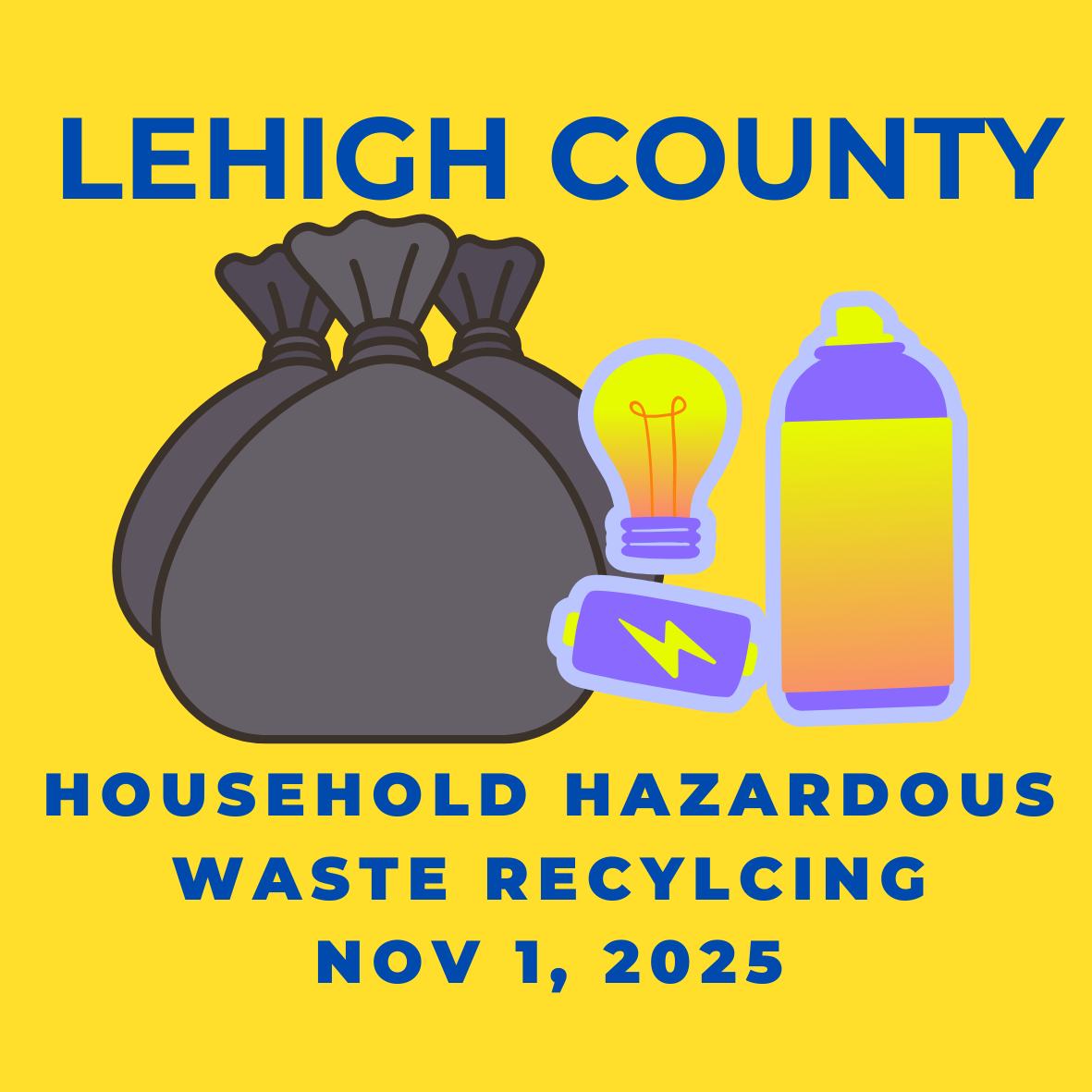 Lehigh County will hold a household hazardous waste recycling event on November 1. Open to county residents only. Limits apply on waste types and amounts, and registration is required. For details and to sign up, visit this website.