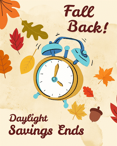 Remember to "fall back" this weekend for Daylight Saving Time and set your clocks back one hour before heading to bed on Saturday, November 1.