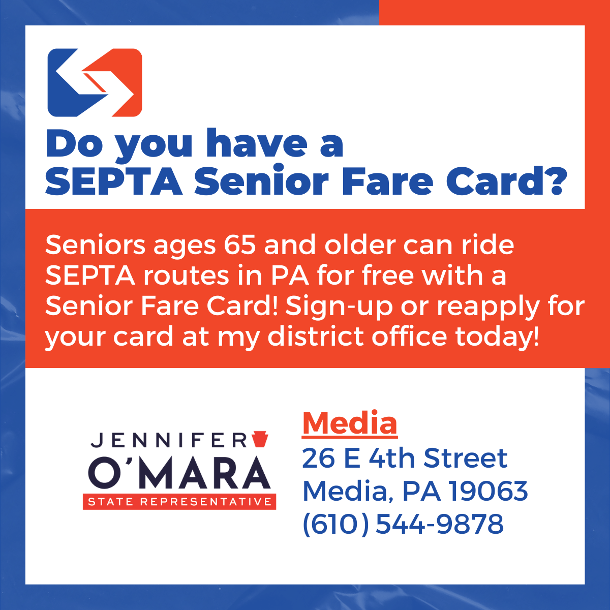 You might have seen an Inquirer story this week about why SEPTA senior fare cards expire—SEPTA says the cards have a shelf life from the manufacturer. It might be a hassle, but the good news is we’re here to help. Give my office a call at 610-544-9878 and a member of my staff will assist you. We may even be able to renew it over the phone.
