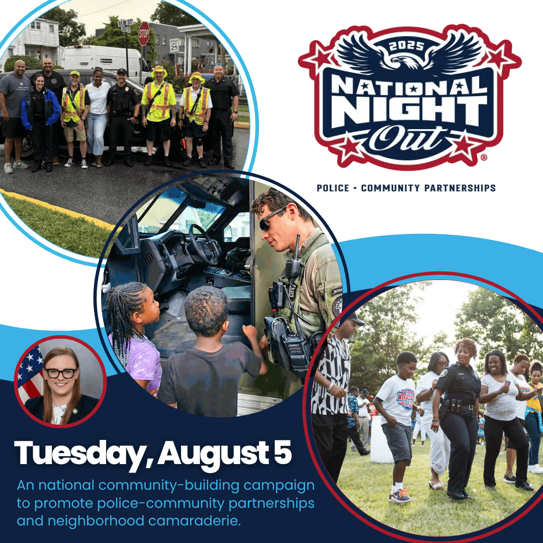 National Night Out is a nationwide event that encourages residents to get out of their homes and meet their neighbors and police officers. Its goal is to heighten crime awareness and strengthen the bond between the police and the community.
